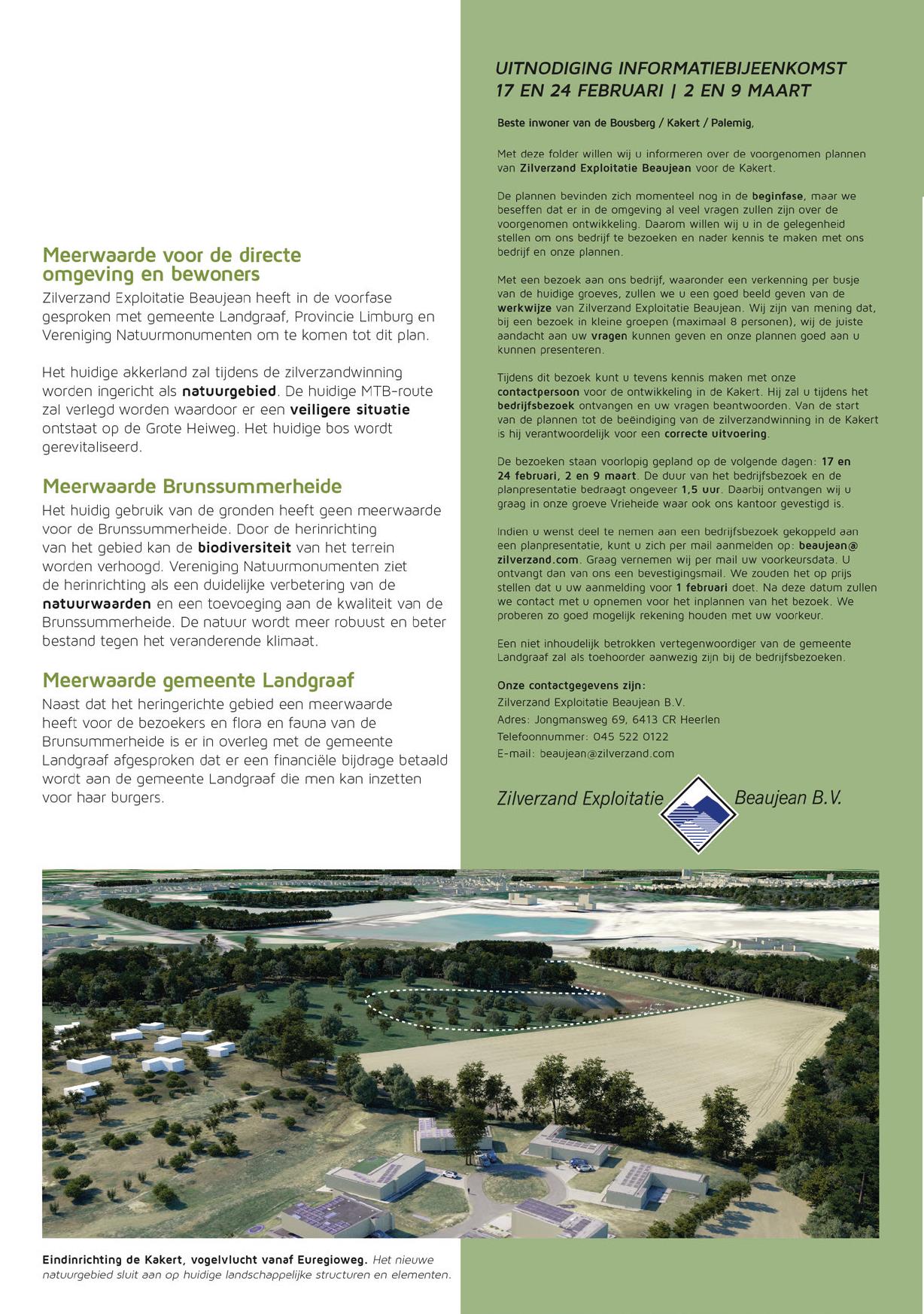 Tijdens de informatiebijeenkomst met betrekking tot de zilverzandwinning en de Kakert is bijgaande flyer uitgereikt.